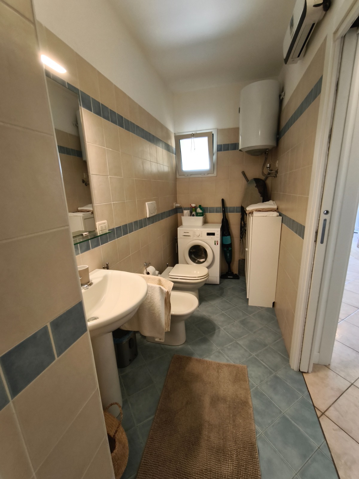 Disimpegno con lavatrice, asse e ferro da stiro.